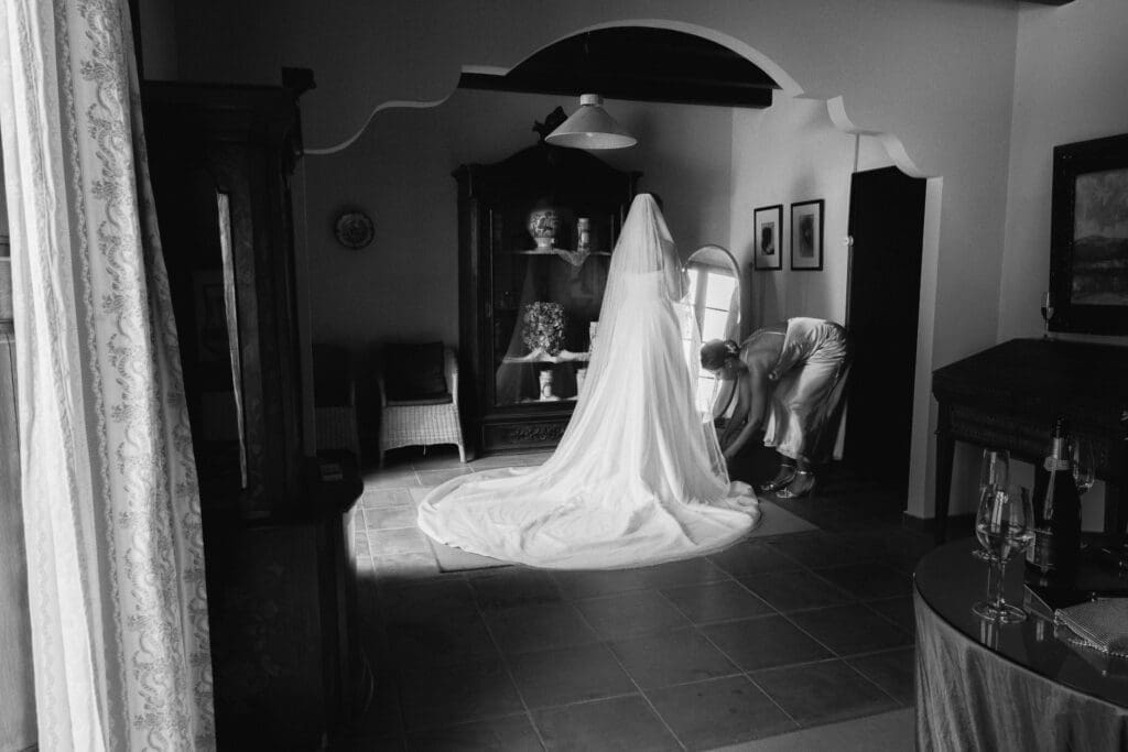Previo al arribo al castillo, el equipo y yo llegamos junto a los novios hasta Altafulla Hotel para producir unas primeras tomas durante los preparativos de cada uno. Recuerdo esos pequeños momentos de intimidad tanto con Amiee como con Jamie; alegres, despreocupados y con muchas ganas de rodearse con sus seres queridos para celebrar el día tan esperado. Mucho antes de llegar a la fecha, algunas peticiones por parte de ellos se basaron en captar y retratar los momentos junto a sus familiares más cercanos.