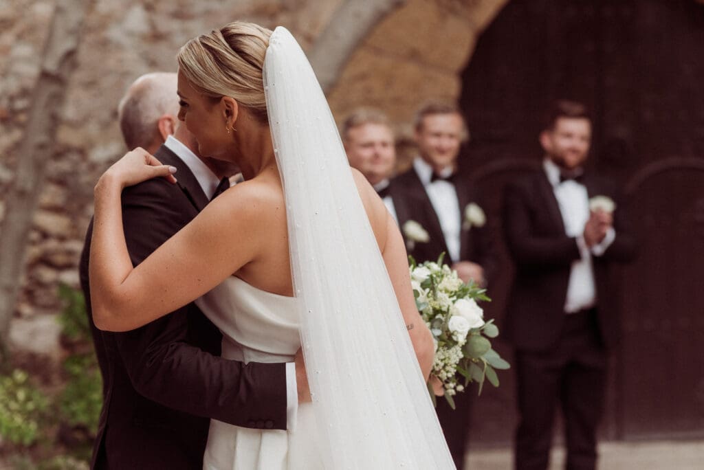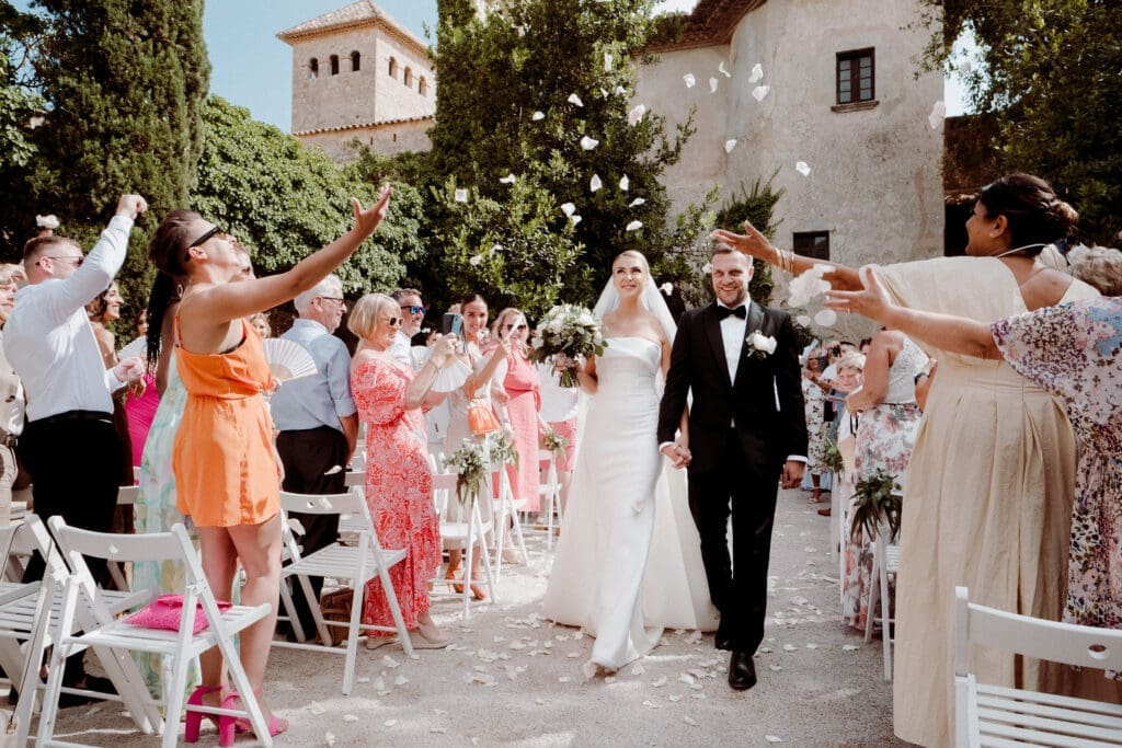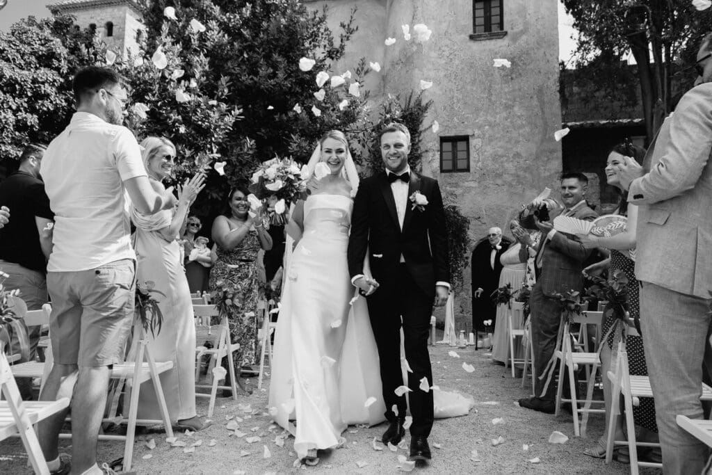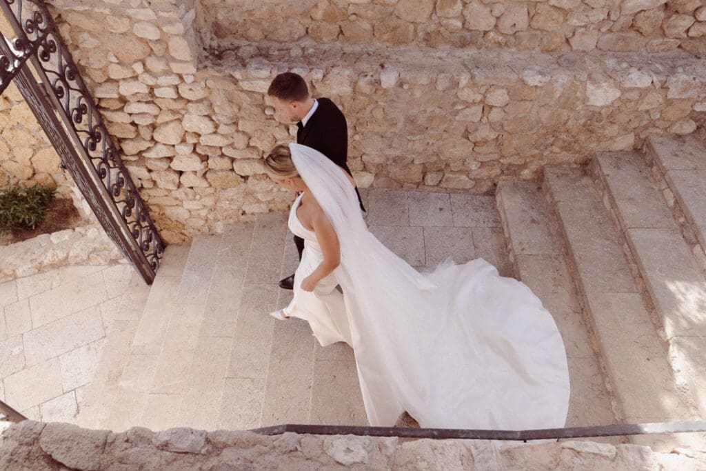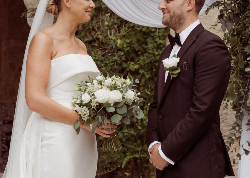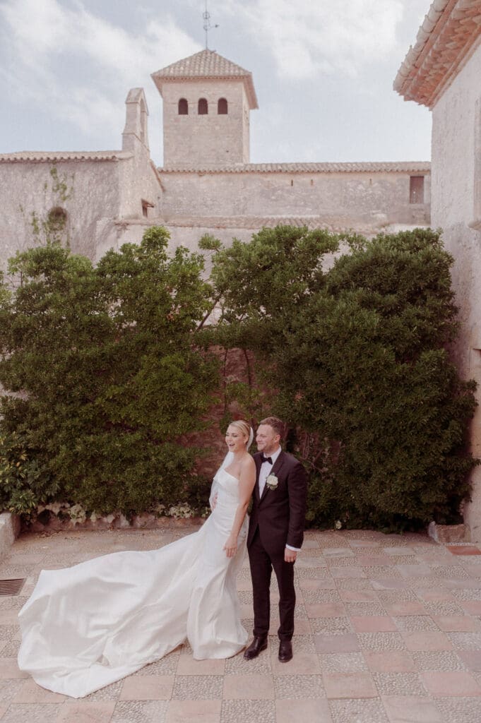 Desde el Reino Unido, Amiee y Jamie eligieron celebrar su día especial y ceremonia en el Castillo de Tamarit, un imponente castillo del siglo XI ubicado a orillas del Mediterráneo.