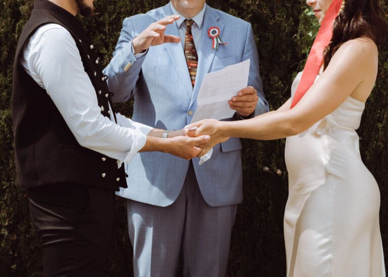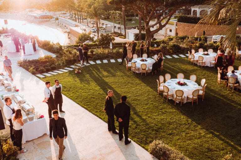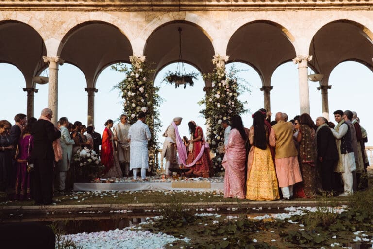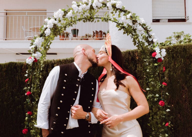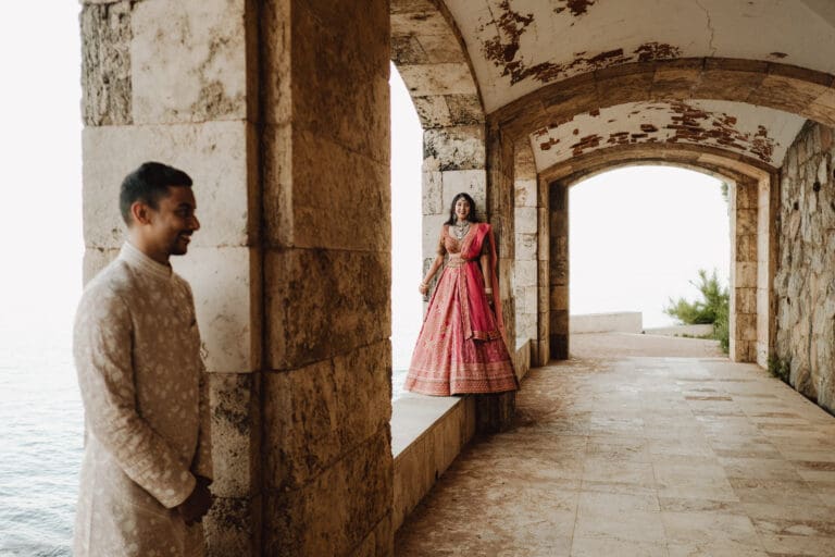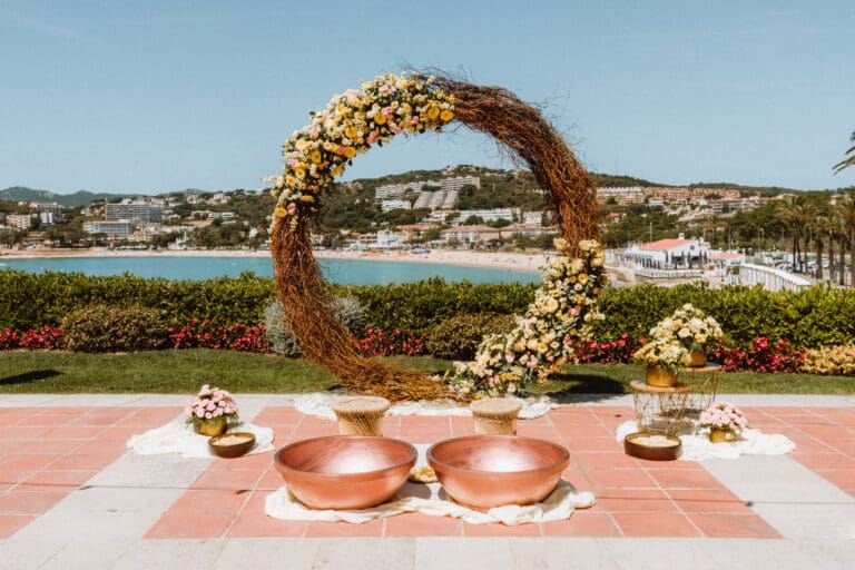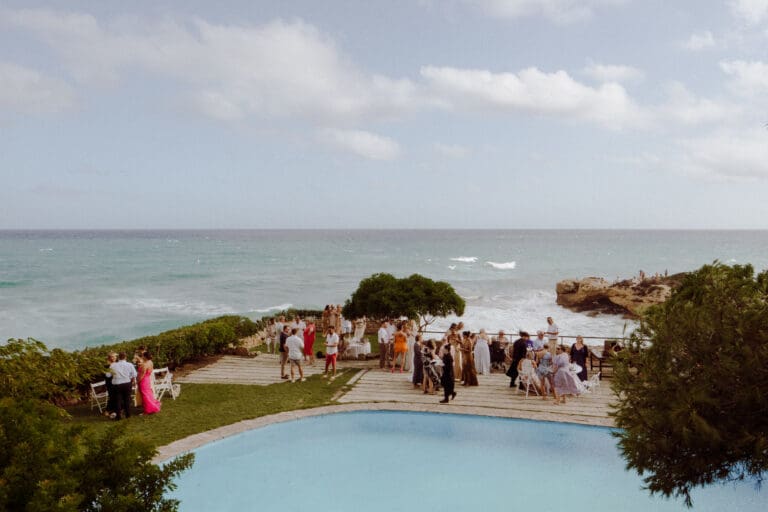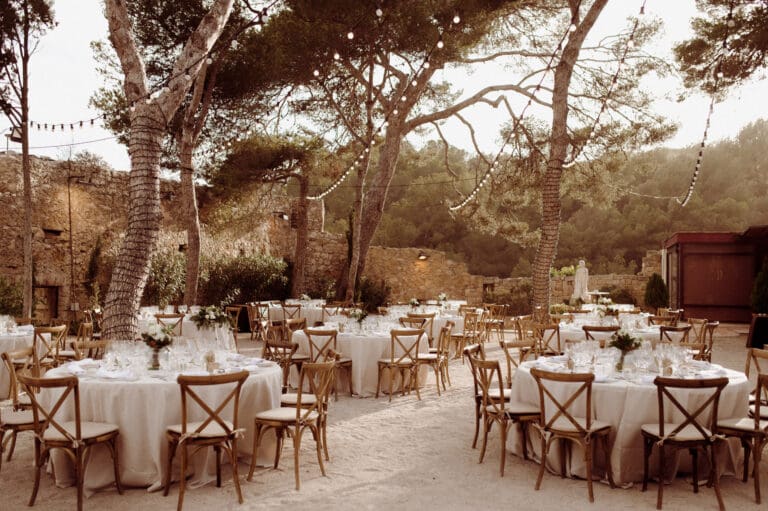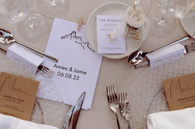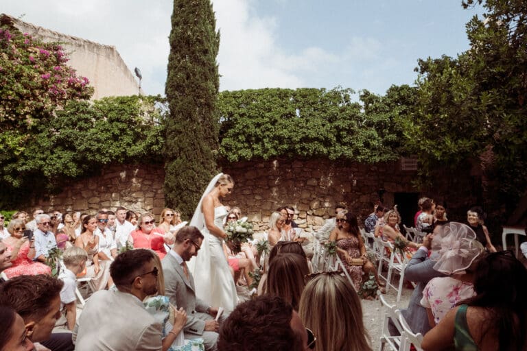 It was a beautiful sunny day in Tarragona, located in the south of Catalonia and in the northwest of Spain, where Amiee and Jamie chose to tie the knot on a hot Saturday in August. The meeting point for the ceremony was the Castell de Tamarit, an imposing 11th century castle located on the shores of the Mediterranean Sea, whose architecture has several influences from the time of its construction, and in which various styles such as Romanesque, Gothic and Renaissance are intermingled.