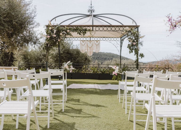 It was a beautiful sunny day in Tarragona, located in the south of Catalonia and in the northwest of Spain, where Amiee and Jamie chose to tie the knot on a hot Saturday in August. The meeting point for the ceremony was the Castell de Tamarit, an imposing 11th century castle located on the shores of the Mediterranean Sea, whose architecture has several influences from the time of its construction, and in which various styles such as Romanesque, Gothic and Renaissance are intermingled.